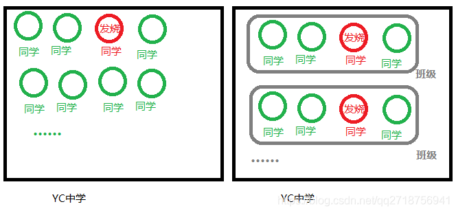 YC中學有幾萬名同學,要找到發燒的同學進行隔離 如果要讓一位老師完成所有測溫任務,那這將是一個大工程,效率會很低(左圖)
