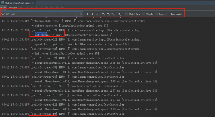 log.info("result:{},spent {} ms", users, System.currentTimeMillis() - start);