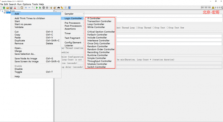 (1)控制測試計劃執行過程中節點的邏輯執行順序,如:Loop Controller、If Controller等;