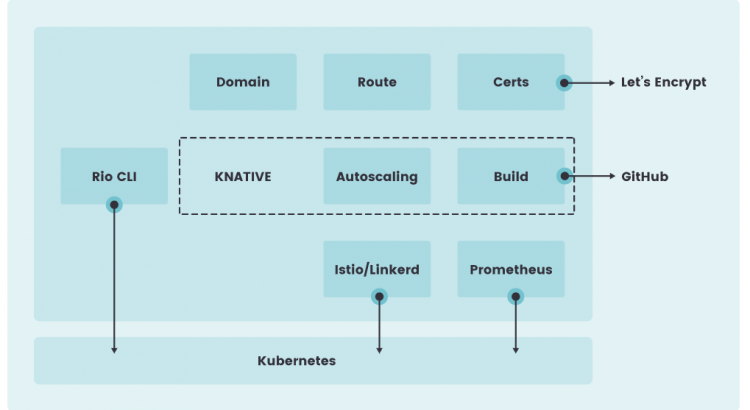 Rio採用了諸如Kubernetes、knative、linkerd、cert-manager、buildkit以及gloo等技術,並將它們結合起來為用戶提供一個完整的應用程序部署環境。
