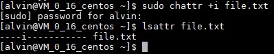假如我們現在有個國寶級重要文件 file.txt ,現在我們使用 chattr 對它進行保護。在這裏,我們給文件增加 +i 屬性: