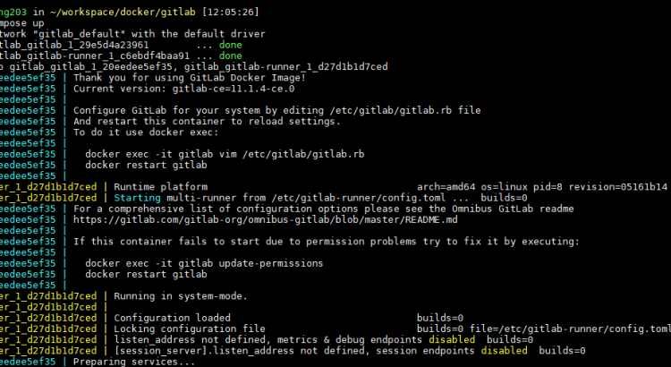 下面是運行效果,第一次運行會比較久,因為要拉取鏡像和初始化GitLab